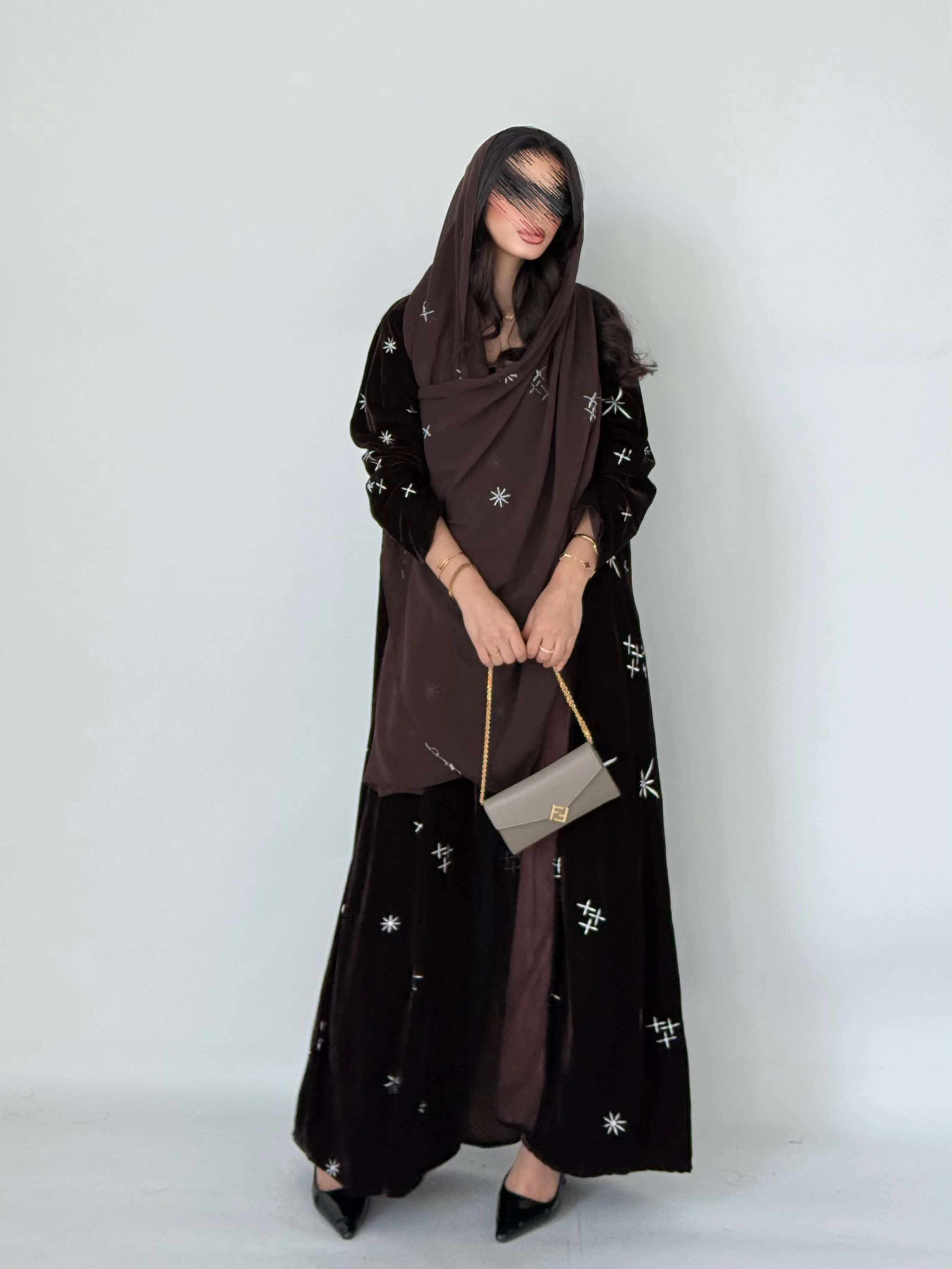 * القماش : مخمل كوري مطرز بتطريز فخم
